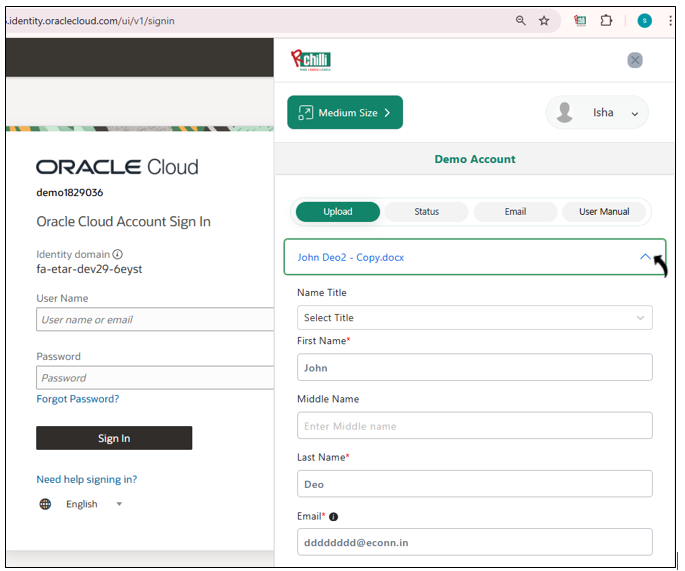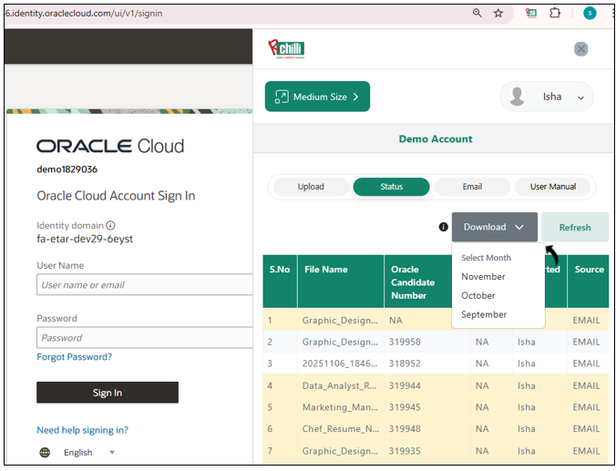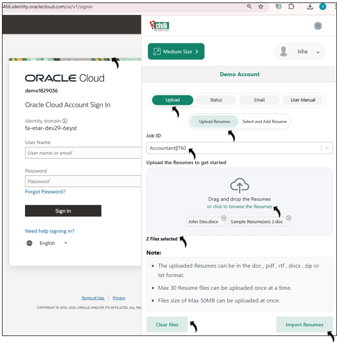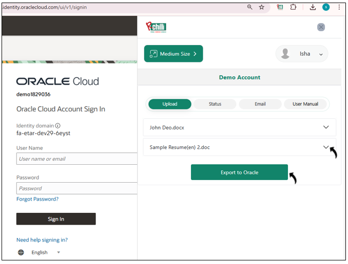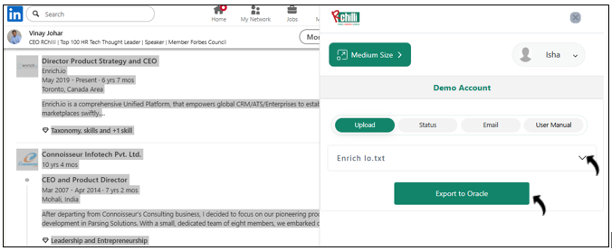 Follow the below procedure to import resumes using RChilli browser assistant into the candidate pool of your Oracle Cloud HCM account.