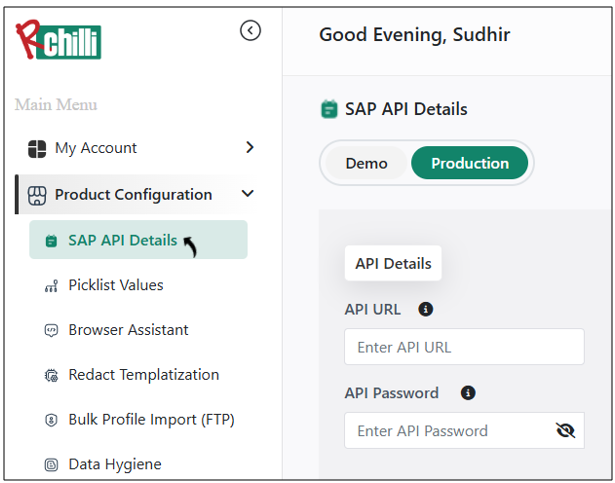 This topic describe the procedure on how you can configure API details for your SAP Demo or Production environment