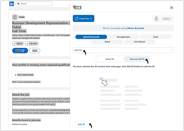 2. Select and Add JD: To copy the JD details from your web browser and upload, select this option and follow below step.