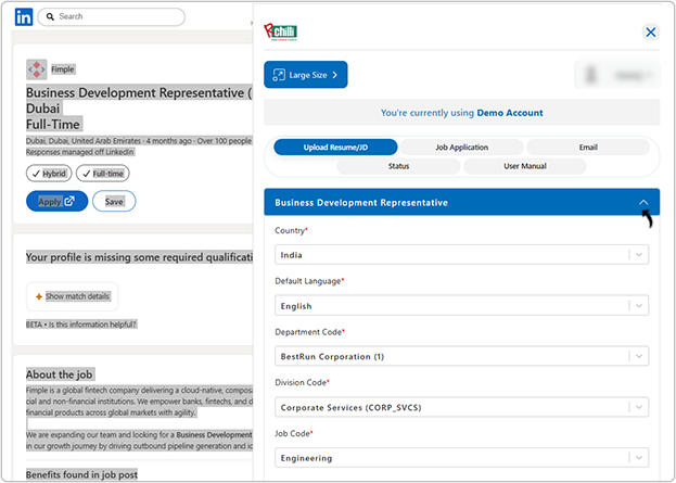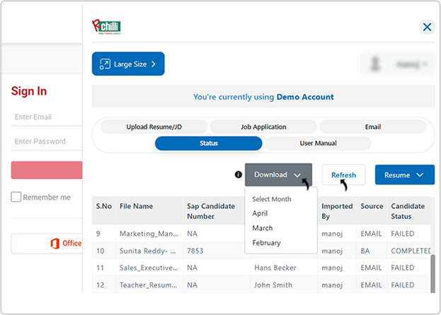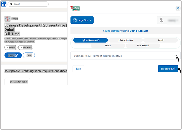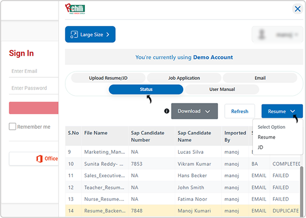 Follow the below procedure to import resumes using SAP extension against your JDs in the SAP account.