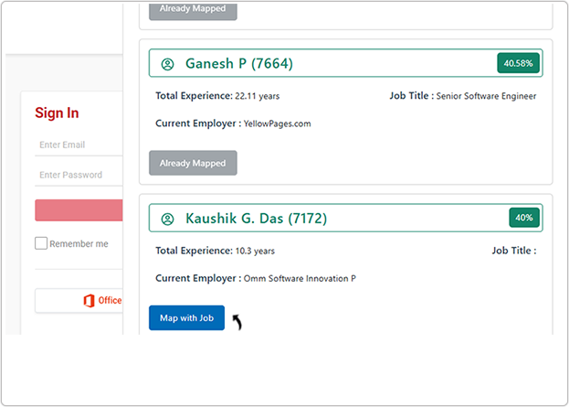 Matching Candidate This column displays the matching candidate and you can map the candidate as applicable for the job. See below section for more details.