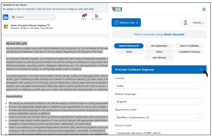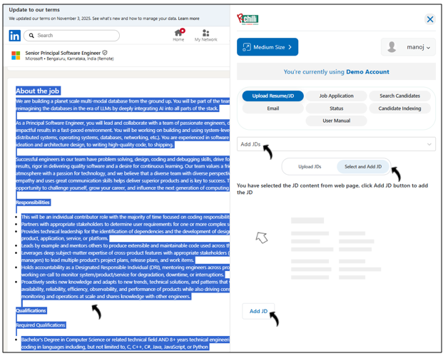 JDs. On the Upload Resume/JD tab, you can either select Upload Jds