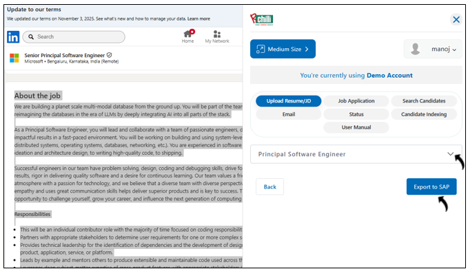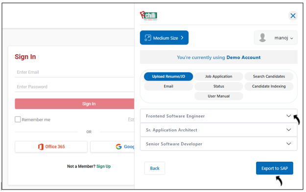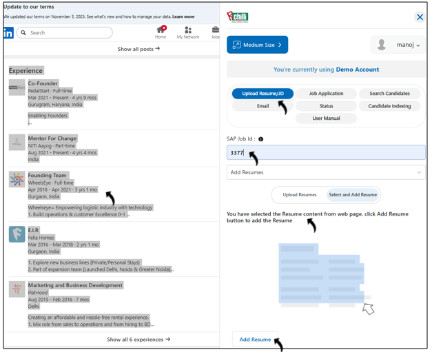 Follow the below procedure to import resumes using SAP extension against your JDs in the SAP account.