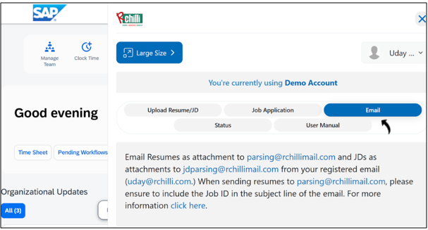 upload resumes or JDs into SAP using the browser extension. Contact your