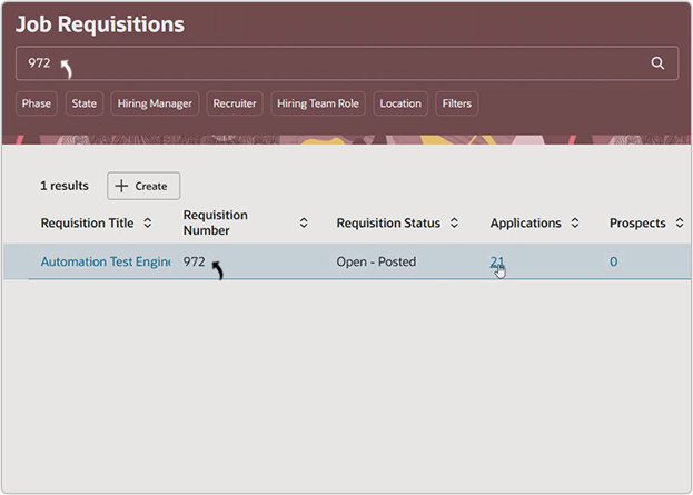 6. Once the job list is displayed, request the list of applicants for a specific job requisition.