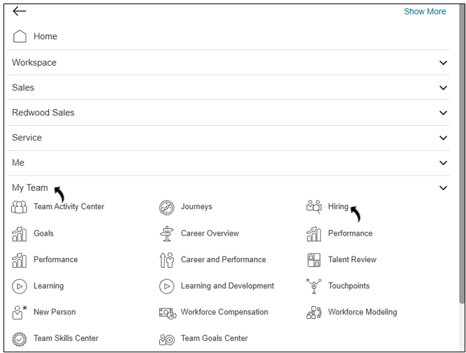- Navigate to Home → My Teams → Hiring.