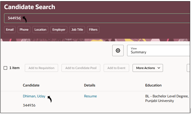 Once the candidate details are updated, you can view the candidate details in