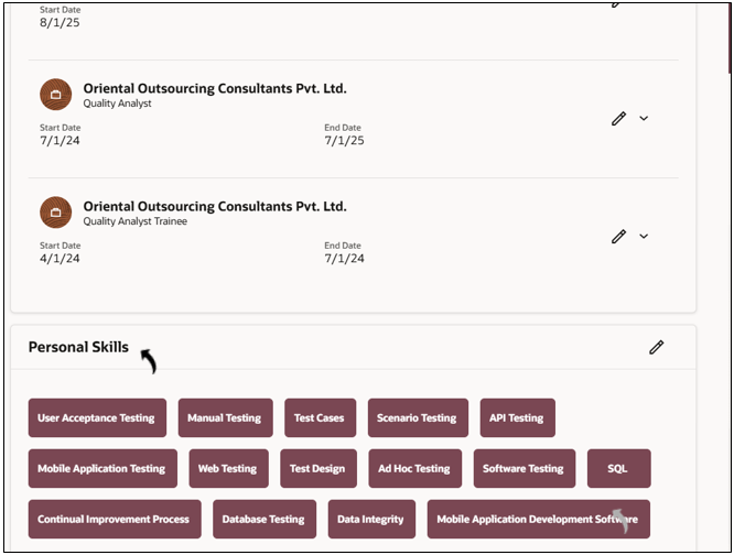 can review fields such as updated skills, experience,