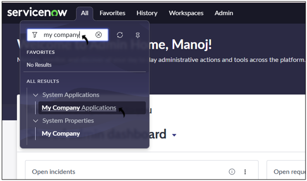 - In your ServiceNow account, search and click Applications